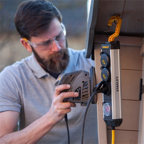 A STANLEY 4-es hálózati elosztó kapcsolóval, felakasztható kivitelben készült, ezzel is megkönnyítve a használatot. A STANLEY hálózati elosztó alumínium háza masszív és robusztus kialakításának köszönhetően hosszú élettartamú lesz akár az építőiparban vagy otthoni alkalmazás során. Elsősorban szakembereknek ajánljuk, rendszeres használat mellett is. Az 5 m-es vezeték feltűnő sárga színű a jó láthatóság érdekében. IP 44-es védelemmel ellátott.