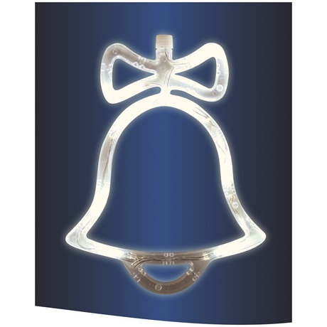 A karácsonyi ablakdíszek egyik legszebbike a harang formájú ábra. A KID 415-ös ablakdísz világítását összesen 8 db melegfehér LED biztosítja. A dísz ideális kiakasztásához 20 cm-es hosszúságú átlátszó vezeték, valamint öntapadós elemtartó is tarozik.