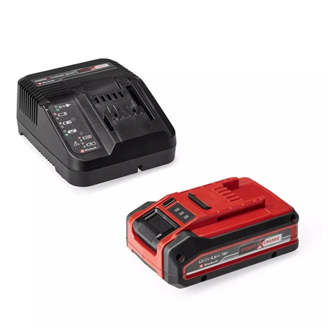 Az Einhell 4 Ah PLUS PXC kezdőcsomag tökéletes választás arra az esetre, ha szeretné elkezdeni Power X-Change eszközparkjának fejlesztését. A 18 V 4 Ah PLUS Power X-Change akkumulátort és 3 A gyorstöltőt tartalmazó kezdőcsomag a Power X-Change rendszercsalád multifunkcionális, határtalan szabadságot biztosító tagja. Az univerzális Power X-Change akkukkal a termékcsalád valamennyi kerti- és szerszámgépét üzemeltetheti. A sorozat töltőkészülékeit az összes PXC akkumulátorhoz használhatja. Mivel csupán egy-egy akkumulátorra és töltőre lesz szüksége a sorozat gépeinek üzemeltetéséhez, ezért nem csak a pénztárcáját kíméli: a Power X-Change termékcsalád maximális rugalmasságot biztosító akkumulátoros megoldásai a környezetet is óvják! Sőt! A különböző típusú töltők és akkumulátorok használatából és tárolásából adódó káoszt is örökre elfelejtheti! Mivel nincs memória-effektus és mélykisülés, ezért a csúcsminőségű akkumulátorok nagy és egyenletes teljesítményt adnak le. A 18 V 4 Ah Power X-Change a Power X-Change termékcsalád alapakkumulátora, amelyet a TWIN-PACK technológiának köszönhetően (egy másik 18 V akkuval kombinálva) olyan munkákhoz is használhat, amelyek 36 V feszültséget igényelnek. A beépített mikroprocesszornak köszönhetően az aktív akkumulátorfelügyeleti rendszer (ABS) folyamatosan felügyeli és vezérli az akkumulátor valamennyi paraméterét, optimális teljesítményt, maximális biztonságot, üzemidőt, valamint élettartamot biztosítva ezzel. Az aktuális töltöttségi szintet a 3 darab LED-ről olvashatja le. Az akku pornak, rozsdának és fizikai behatásoknak ellenálló kivitelben készült. A süllyesztett fogantyúk segítségével egyszerűen kiveheti az akkumulátort a készülékekből. A 4,0 Ah PLUS akkumulátor mindössze 75 perc után újra használható. Ha az akku hosszabb ideig marad a töltőben, akkor kímélő töltés mellett teljesen (100%-ig) feltöltődik. Az integrált akasztót használva a gyorstöltőt a falra is rögzítheti. A gyorstöltő technológiának köszönhetően az akku rövid idő alatt feltölthető. Az intelligens akkumulátorfelügyeleti rendszer tartósan optimalizált töltési folyamatot és maximális biztonságot garantál. A frissítő (refresh) üzemmódot választva a mélykisült akkumulátorokat is újra üzembe tudja helyezni. Az aktuális töltöttségi szintet a 6 fokozatú LED-kijelzőről olvashatja le.