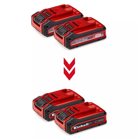 Az Einhell 18 V 3,0 Ah Power X-Change PLUS Twin-Pack akkumulátorcsomag a Power X-Change termékcsalád multifunkcionális tagja. Az univerzális Power X-Change akkumulátorokkal a termékcsalád valamennyi akkus készülékét üzemeltetheti, így gyorsan nélkülözhetetlen segítőtársaivá válnak a kerti munkák és a szerszámgépek üzemeltetése során is. Ha egyetlen akkumulátort és töltőt használ valamennyi készülékéhez, akkor nem csak a költségeit csökkentheti és a környezetet óvja, hanem a különböző típusú töltők és akkuk használatából és tárolásából adódó káoszt is örökre elfelejtheti! A legújabb generációs lítium-ion cellák kompaktabbak, könnyebbek, és 100?%-kal nagyobb teljesítményt biztosítanak, bármilyen munkához használja is a készüléket. A teljesítményintenzív feladatok elvégzéséhez a PLUS-technológia nyújt extra támogatást. Mivel nincs memória-effektus és mélykisülés, ezért a kiváló minőségű akkumulátorok egyenletes és nagy teljesítményt tudnak leadni. A 18 V 3,0 Ah PXC PLUS a Power X-Change család csúcskategóriás akkumulátora, amelyet a Twin-Pack technológiának köszönhetően olyan munkákhoz is használhat, amelyek 36 V feszültséget igényelnek. A beépített mikroprocesszornak köszönhetően az aktív akkumulátorfelügyeleti rendszer (ABS) folyamatosan felügyeli és vezérli az akkumulátor valamennyi paraméterét, optimális teljesítményt, maximális biztonságot, üzemidőt, valamint élettartamot biztosítva ezzel. Az aktuális töltöttségi szintet a 3 darab LED-ről olvashatja le. Az akku pornak, rozsdának és fizikai behatásoknak ellenálló kivitelben készült. Gumírozott burkolattal a nagyfokú ütésvédelemért és biztos fogásért. A süllyesztett fogantyúk segítségével egyszerűen kiveheti az akkut a készülékekből. A két darab 3,0 Ah Power X-Change PLUS akku szériatartozék. A töltőt külön vásárolhatja meg.