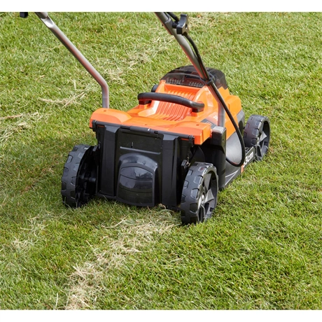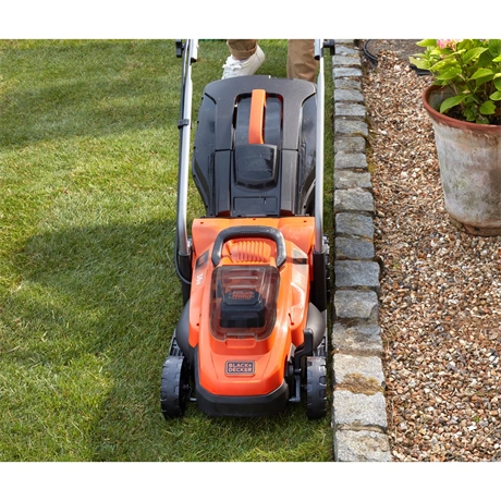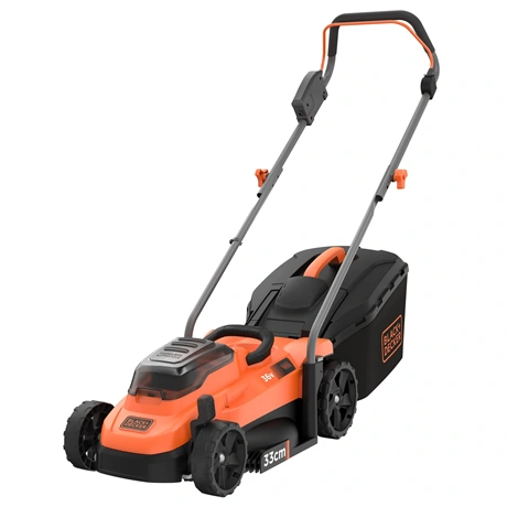- 36V-os, akkumulátoros fűnyíró, amely 33 cm-es vágásszélességgel ideális közepes méretű kertekhez (300–500 m²).