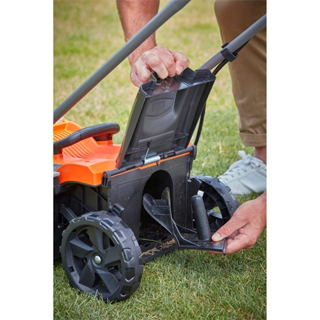 - Öt vágásmagasság közül választhat (25–65 mm), a szárnyas acél kés maximalizálja a fűgyűjtést.