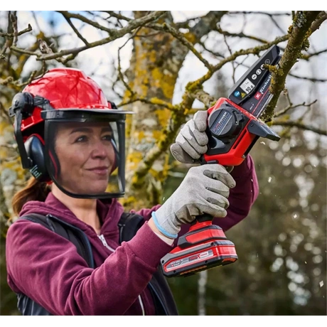 Az Einhell akkus ágvágó láncfűrész GE-PS 18/15 Li Holster Kit egy praktikus eszköz fák és cserjék metszéséhez és formázásához, valamint kerti hulladék aprításához és kisebb átmérőjű, négyszögletes gerendák fűrészeléséhez. A kompakt fűrész az Einhell Power X-Change család tagja, és a rendszersorozat összes akkumulátorával és töltővel kombinálható. A szerszámot egy Einhell kefe nélküli motor hajtja. Ez a kefe nélküli motor nagyobb teljesítményt és hosszabb üzemidőt biztosít, mint egy hagyományos szénkefés motor. Online regisztráció után 10 év garancia jár a kefe nélküli motorra. A 15,8 cm hosszú vezetősínnel és 12,5 cm vágási hosszával a kis és könnyű akkus ágvágó láncfűrész tökéletes a rugalmas kerti használatra. A hatékony motor nagyon alacsony rezgésszintet és akár 4,8 m/s láncsebességet biztosít. A fűrészhez kiváló minőségű kard és lánckészlet tartozik a nagy vágási teljesítmény és a legjobb munkaeredmény érdekében. A kard és a lánc könnyen és szerszám nélkül cserélhető a könnyű karbantartás érdekében. A biztonságos és rugalmas használat érdekében a fűrész kézvédővel és összecsukható láncvédővel rendelkezik. A praktikus kerti szerszám kényelmesen tartható a karcsú fogantyúnak, a speciális puha markolatú felületeknek és a kétkezes használatot lehetővé tevő beépített kéztartónak köszönhetően. A kis láncfűrész biztonságos tárolására egy kardvédő is tartozik hozzá. A csomag tartalmaz egy applikátort a lánc kézi olajozásához és egy imbuszkulcsot a lánc utánfeszítéséhez. Ez közvetlenül a készüléken tárolódik, így mindig kéznél van. A készlet tartalmaz egy tokot is a készülék kényelmes közbenső tárolására. A készüléktartó tartós pamutszövetből készült, és megerősített belső szerkezettel rendelkezik. O 18 cm-es nyílással és 24 cm-es mélységgel elegendő és biztonságos tárolást biztosít a metszőláncfűrész számára. Akkumulátor és töltő nélkül szállítjuk. Ezek külön megvásárolhatók.