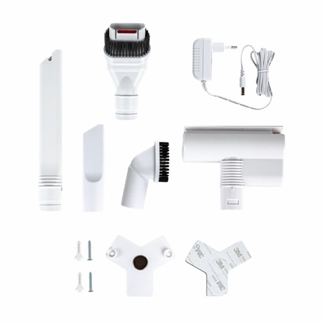 A csomag tartalmaz egy elektromos turbó forgó kefét a padlóhoz és a szőnyegekhez, egy elektromos mini turbó forgó kefét a kárpitozáshoz, a 2 az 1-ben kefét, a hosszú fúvókát, a kis fúvókát, a kanapékefét és a fali konzolt.