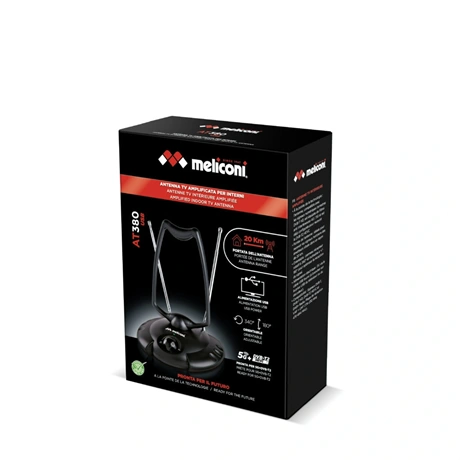 A Meliconi AT 38 Erősített beltéri antenna a hagyományos adások melett, ideális a földi digitális sugárzás vételére is. Minimálisra csökkenthető az interferencia a speciális szűrőnek köszönhetően. Magas minőségű hang és tökéletes képminőség érhető el. Szobaantenna DVB-T (digitális TV) és DAB (digitális rádió),valamint hagyományos (analóg) sugárzású TV adások vételére. Tápellátás USB csatlakozáson keresztül (TV vagy set-top-box-om keresztül) .