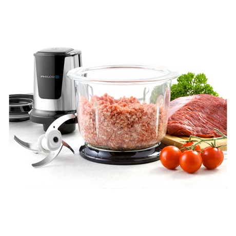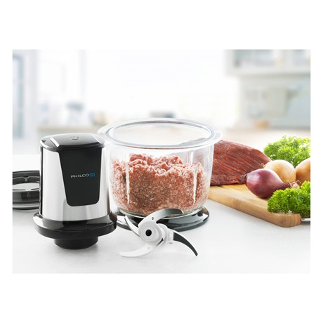 A Philco PHHB 6911 konyhai aprító 4 precízen élezett acél késsel van ellátva. Az akár 400 W teljesítményű motornak köszönhetően különféle húsokat, zöldségeket, gyümölcsöket, fűszernövényeket vagy akár dióféléket apríthat. Kiválóan alkalmas pürék vagy bébiételek elkészítésére is. A speciális szimmetrikus terheléseloszlású rendszernek köszönhetően a Philco aprító hosszabb élettartammal rendelkezik, mint hasonló társai. Az 1,5 literes térfogatú üvegedény gond nélkül mosható mosogatógépben. A csúszásgátló talpak biztosítják a stabil munkavégzést.