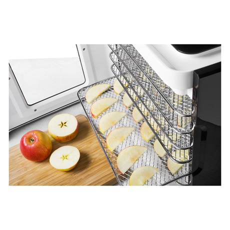 A Philco PHFD 7067 aszaló 6 db szárító tálcával rendelkezik. Segítségével különböző aszalt gyümölcsöket, gyógynövényeket, gombákat, húsokat vagy akár halakat száríthatunk. A beépített ventilátor gondoskodik az egyenletes szárításról mindegyik szinten, a szárító sziták rácsának kialakítása pedig megakadályozza a penész keletkezését és optimalizálja a légáramlást. A szárító tálcák mosogatógépben moshatóak. Az időtlen dizájn és a modern antracit szín minden belső térben kiemelkedik. Az egyszerű érintésvezérléses működtetés és a jól látható kijelző lehetővé teszi, hogy mindenki használhassa ezt a készüléket.