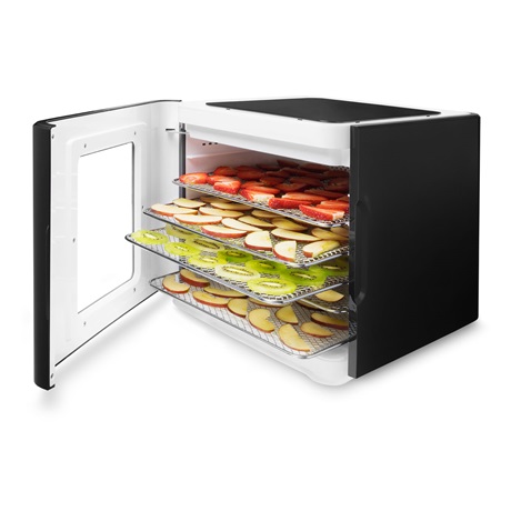 - Az átlátszó fedélen és a szitákon keresztül szemmel követhető a szárítás folyamata