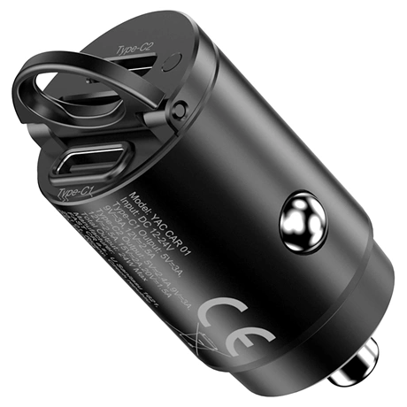 A YENKEE YAC CAR 01 egy modern USB autós töltő, amely Power Delivery és két USB-C porttal van felszerelve. Az Apple mobiltelefonokat akár 30W teljesítménnyel töltheted, így biztosítva a lehető leggyorsabb energiafelvételt.