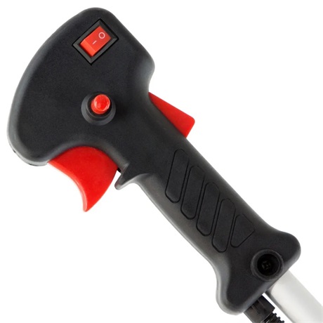 - Kényelmes vezérlés – az összes gomb a jobb oldali fogantyún található: gyújtáskapcsoló, motorfordulatszám-növelés (gázgomb) és leállító gomb (megakadályozza a gázgomb véletlen megnyomását).
