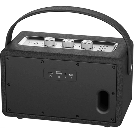 Bár a modern technológia jelen van, az ikonikus megjelenés stílusos retró hangulatot áraszt. Az egyszerű forma kiemeli az elegáns fém elemeket és a hangsúlyos rácsot, így a hangszóró a belső tér dizájnelemévé válik.