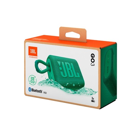 Új, innovatív, környezetbarát kialakítás – ugyanaz a nagy hangteljesítmény. Tedd egy kicsit zöldebbé a világot egy kötelező kiegészítővel; a váz 90% újrahasznosított műanyagból, a hangszórórács 100%-ban újrahasznosított szövetből készült.Trendi, hordozható és vízálló. A JBL Go 3 ECO merész stílusú és gazdag JBL Pro Sound hangzással rendelkezik. Az új, szemet gyönyörködtető dizájnnal, színes szövetekkel és kifejező részletekkel elengedhetetlen kiegészítő akár egy kiránduláshoz. Hangzása fantasztikus a JBL Pro Sound segítségével, IP67-es besorolással fokozottan víz- és porálló, így folyamatosan hallgathatod esőben is, az integrált hurokkal pedig bárhová magával viheted. A JBL Go 3 ECO olyan jól néz ki, mint ahogy szól.