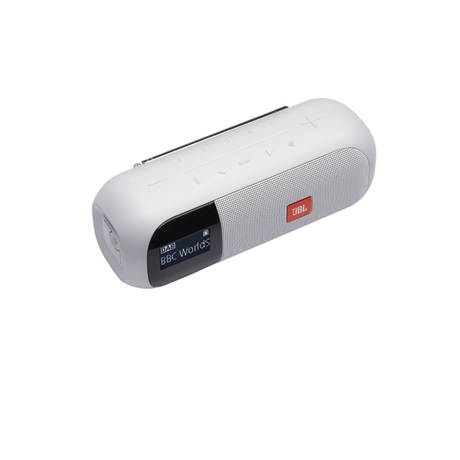 A konyhában, a medencénél, vagy akár a parkban. Vidd magaddal kedvenc FM rádióállomásaidat bárhová. A karcsú JBL Tuner 2 FM kompakt, hordozható rádió kristálytiszta hanggal, Bluetooth-al és 12 órás játékidővel a rendelkezésedre áll. Gyorsan beállíthatod, mentheted kedvenc rádióidat 5 előre programozható gomb segítségével és a görgethető LCD-kijelzőn könnyen olvashatod az állomás információkat. Az IPX7 besorolása vízálló és kültéri használatra alkalmassá teszi, így még hirtelen eső nem árthat a Tuner 2-nek.