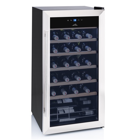 Az ETA 9529 borhűtő méretei 84 x 43 x 45 cm, az érintésvezérlő segítségével kényelmesen beállíthatja a kívánt hőmérsékletet 5–18 ° C tartományban. Az ajtó rozsdamentes acél fogantyúval történő kinyitása után lélegzetelállító kilátás nyílik a belső térre, elegáns kivitelben osztva 6 krómozott polccal, fa elülső részével. A borhűtőben található LED lámpa megkönnyíti az eligazodást a kollekcióban.