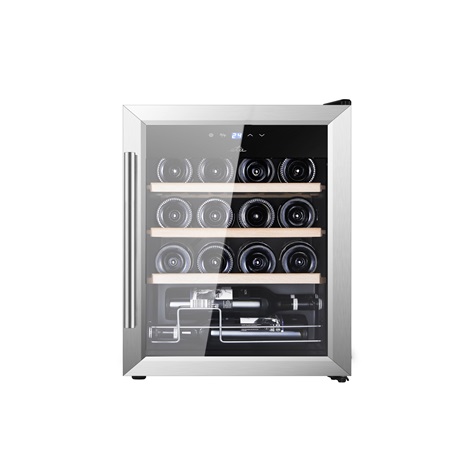 Az elegáns borhűtő megjelenésével emeli környezetének stílusát. Az érintésvezérlő segítségével egyszerűen kiválaszthatja a megfelelő hőmérsékletet (5-18 ° C), amelyet ezután egy tiszta LED-kijelzőn megjelenít. Akár 16 üveg borral kényeztetheti magát optimális körülmények között, amelyek türelmesen várják a vendégeket. A teljes 42 literes térfogatot három krómozott polc osztja el, amelynek fa elülső része van. Ezenkívül a belső teret LED-ek világítják meg, amelyek energiatakarékosak és nem termelnek nem kívánt hőt.