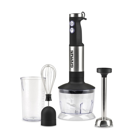 Tartozék: műanyag mérőpohár, habverő, üvegedény, aprító