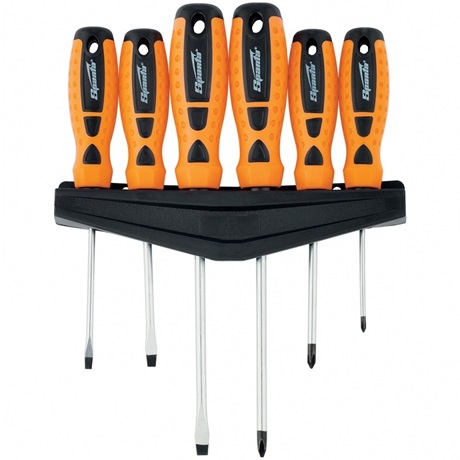 Sparta "Point" 11782 csavarhúzó készlet kétkomponensű fogantyúkkal, CrV, 6 db legelterjedtebb méretű szerszámból áll.