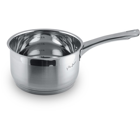 - nemesacél edény elsőosztályú rozsdamentes acélból, amelynek alja meg van erősítve és elegáns fülekkel rendelkezik a nagyobb biztonság, használhatóság és kényelem érdekében