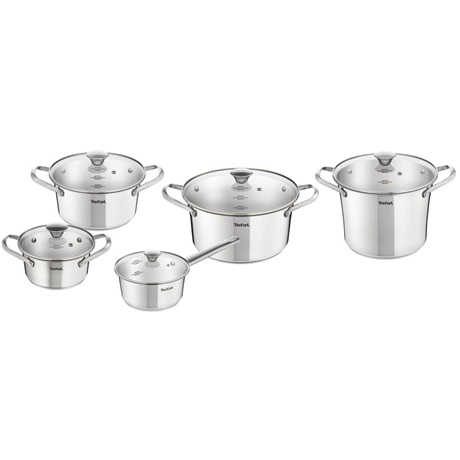 A Tefal Simpleo fazék- és serpenyőkészlet kényelmes és könnyed főzést elősegítő hasznos tulajdonságaival kudarcok nélkül fedezheti fel a főzés örömeit. Minden főzőfelülettel (indukcióval is) kompatibilis.