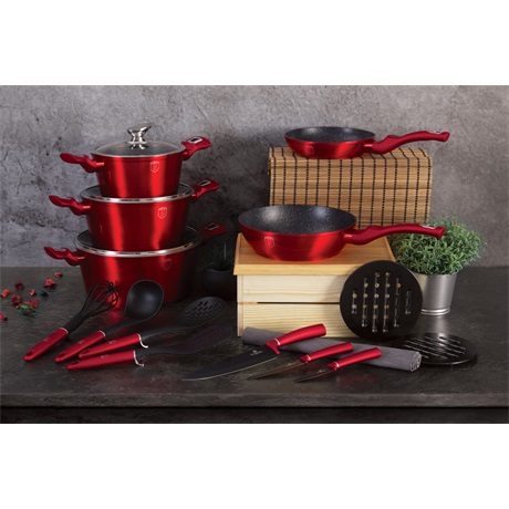 A BerlingerHaus serpenyői és edényei szinte kivétel nélkül kovácsolt alumíniumból készülnek, amely lehetővé teszi a magasfokú hővezetést. Emellett 3 rétegű tapadásmentes márványbevonattal rendelkeznek, aminek köszönhetően az étel nem ragad és nem ég az edény aljára, így az ételek minimális zsiradék hozzáadásával is egyenletesen fognak átsülni és szaftosak maradnak.