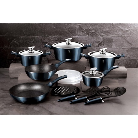 A BerlingerHaus serpenyői és edényei szinte kivétel nélkül kovácsolt alumíniumból készülnek, amely lehetővé teszi a magasfokú hővezetést. Emellett 3 rétegű tapadásmentes márványbevonattal rendelkeznek, aminek köszönhetően az étel nem ragad és nem ég az edény aljára, így az ételek minimális zsiradék hozzáadásával is egyenletesen fognak átsülni és szaftosak maradnak.