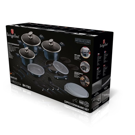 A BerlingerHaus serpenyői és edényei szinte kivétel nélkül kovácsolt alumíniumból készülnek, amely lehetővé teszi a magasfokú hővezetést. Emellett 3 rétegű tapadásmentes márványbevonattal rendelkeznek, aminek köszönhetően az étel nem ragad és nem ég az edény aljára, így az ételek minimális zsiradék hozzáadásával is egyenletesen fognak átsülni és szaftosak maradnak.