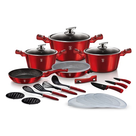 A BerlingerHaus serpenyői és edényei szinte kivétel nélkül kovácsolt alumíniumból készülnek, amely lehetővé teszi a magasfokú hővezetést. Emellett 3 rétegű tapadásmentes márványbevonattal rendelkeznek, aminek köszönhetően az étel nem ragad és nem ég az edény aljára, így az ételek minimális zsiradék hozzáadásával is egyenletesen fognak átsülni és szaftosak maradnak.