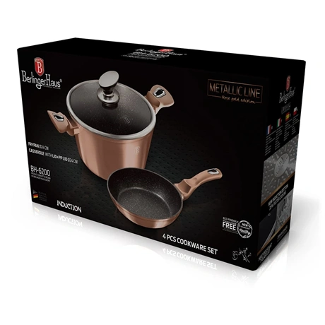 A 4 részes edénykészlet a Metallic Line Rose Gold Edition család tagja, amely a konyhai eszközök új szintjét képviseli. Ez a készlet nemcsak funkcionális, hanem stílusos is, így bátran kihelyezheti a konyhapultra, hogy mindenki megcsodálhassa.