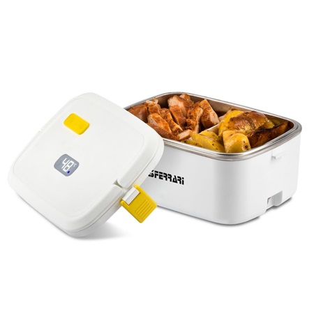 A G3Ferrari Vitto egy elektromos ebédlődoboz. Készítse el otthon az ételt és vigye magával a munkahelyére vagy kiránduláshoz. Ideális, hogy felmelegítse és melegen tartsa az ételt. Az elektromos ebédlődoboz, a Vitto tökéletes tömítéssel, zárrással és összecsukható fogantyúval van felszerelve, hogy a belehelyezett étel kiömlése nélkül vihesse magával. A rozsdamentes acél edényben található ételosztó lehetővé teszi, hogy kétféle ételt a lehető legnagyobb biztonságban helyezzen bele élelmiszer biztonsági szempontból. A hőmérsékletjelző mutatja, hogy az étel megfelelően fel van-e melegítve vagy további melegítésre van szükség.