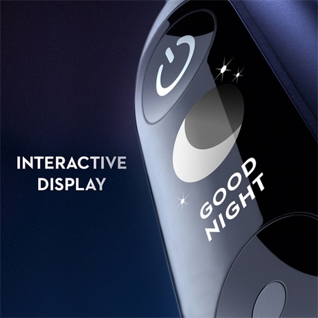 AZ INTERAKTÍV KIJELZŐ létfontosságú információkat jelez: beleértve a fogmosási módokat és a fejcserére emlékeztetőt, üdvözli Önt, amikor bekapcsolja, és mosolyog a jól végzett munkáért.