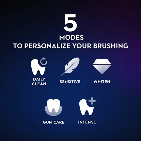 5 SMART MÓD a fogmosás személyre szabásához: napi tisztítás, érzékeny, fogínyápoló, intenzív tisztítás, szuperérzékeny