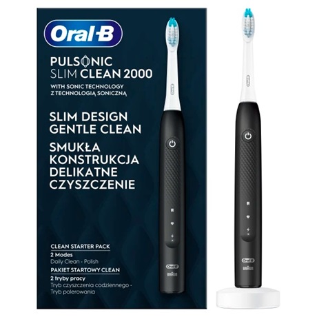 Kimagasló lepedékeltávolítás a ragyogó mosolyért. Az Oral-B Pulsonic Slim Clean Sonic elektromos fogkefe a gyengéd Sound technológia segítségével több lepedéket távolít el, mint az Oral-B manuális fogkefék. Gyengéd tisztítás és fehérebb fogak a vibráló, lekerekített sörtékkel rendelkező meghosszabbított fogkefefejnek köszönhetően. Egyéni igényeinek megfelelően kétféle fogmosási üzemmód közül választhat: mindennapos és fogfehérítő. A professzionális időmérő emellett emlékeztet a fogorvosok által javasolt 2 perces fogmosási idő betartására.