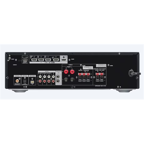 - BEMENETI ÉS KIMENETI CSATLAKOZÓK: Hangbemenet opt. (1), Hangbemenet koax. (1), Analóg hangbemenet (4), Elő. ki. mélynyomó (2), fejhallgató-kimenet (1), USB (csak tápellátáshoz)