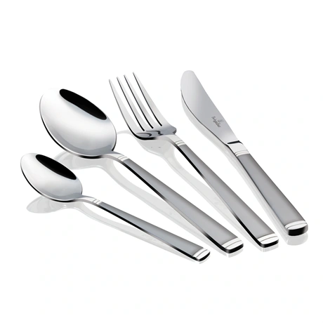 A készlet rozsdamentes acélból készült, szatén fényű bevonattal, amely nemcsak elegáns megjelenést biztosít, hanem tartósságot is garantál. Az anyagválasztásnak köszönhetően az evőeszközök ellenállnak a mindennapi használatnak és a mosogatógépben való tisztításnak is.