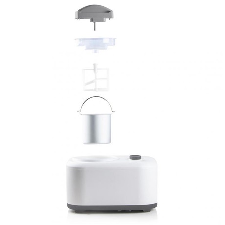 - Beépített kompresszor, ami azonnal hűteni kezdi fagyasztótálba tett fagyi alapot.