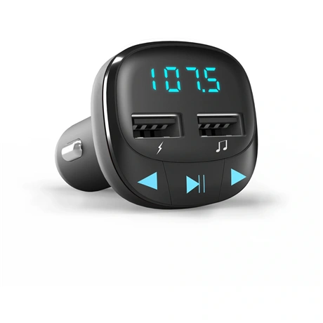 - FM adó, amely vezeték nélkül küld zenét az autórádióba