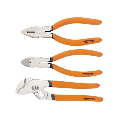 A készlet fogót, oldalvágót, állítható fogót tartalmaz. Mindezek a szerszámok kényelmes markolattal vannak ellátva.