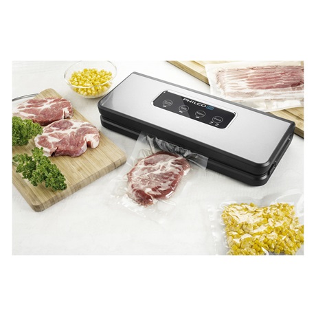 A Philco PHVS 3030 vákuumozó segítségével az élelmiszerek tartósságát akár ötszörösére hosszabbítja a frissesség, minőség és a tápérték megtartása mellett. A készülék két üzemmódban használható, lehetőség van száraz illetve nedves ételek vákuumozására. A mindössze 2 mm széles, homogén, 100%-ban légáteresztő hegesztés tökéletesen zár, ezáltal megvédi a csomagolt élelmiszereket a hűtő, vagy a fagyasztó kellemetlen szagától. Készíthet vákuum csomagolt pácolásokat vagy akár próbálja ki a sous vide ételkészítési lehetőséget.