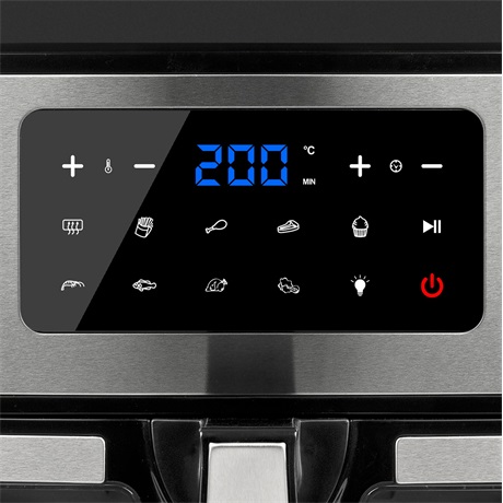 - 9 előre beállított program: melegítés, chips, csirkecomb, hús, desszertek, kagylók, hal, csirke, zöldségek