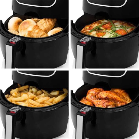 A Tristar 18301701 XXL-es forró levegős fritőzével akár az egész család számára süthet ropogós, ínycsiklandó és egészségesebb sültkrumplit. Segítségével süthetjük és grillezhetjük a finom falatokat olaj nélkül! 8 előre programozott funkciójának és tapadásmentes bevonatú alkatrészeinek köszönhetően, könnyen használható és tisztítható.