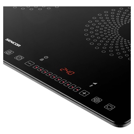 A Sencor SCP 4501BK egy kétzónás indukciós főzőlap üvegkerámia borítással, ami ennek köszönhetően hideg tapintású. A főzési felületek átmérője 120 és 260 mm, amit mikroprocesszor vezérel, így a megfelelő edényeket automatikusan érzékeli. A hőmérséklet egyszerűen szabályozható 60-240°C között, de lehetőség van az előre beállított 10 fokozat használatára is. Minden szükséges információ megjelenik az áttekinthető LCD kijelzőn. Az ultravékony kialakítás a főzőlap mindössze 4,3 cm magas. Kompakt méretének köszönhetően ideális megoldás kis lakásokba, kollégiumokba vagy nyaralókba.