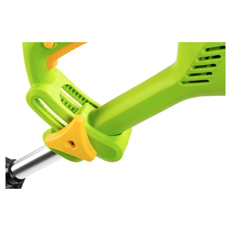 Nagyobb kertekbe való nagy teljesítményű elektromos fűvágó. A villanymotor 1 400 W-os teljesítménye lehetővé teszi, hogy a damilfej használatán kívül háromágú acélkést is feltegyen. A háromágú kés segítségével le lehet vágni a zsenge faágakat és egyéb ellenállóbb növényeket. A mellékelt damilfej két damillal van ellátva. A kiengedésük félautomatikus. A fűvágó tengelye osztott, és szállítás vagy tárolás céljából szét lehet szedni. Az áttételt a motortól a vágóeszközhöz acéltengely biztosítja, nem pedig zsinór, mint más termékek esetében.
