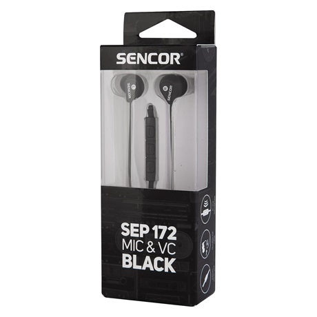 A Sencor SEP 172 VCM egy robosztus felépítésű tartós sztereó fülhallgató headset, hangerőszabályzó gombbal lett felszerelve, széles színválasztékban. Egyedi fejlesztésű, ultrakönnyű kialakítású fülhallgató. A fülhallgató háza érzékeny és basszusra hangolt neodímium drivert tartalmaz. A kábel kialakításakor fő szempont volt a kényelmes viselet még mozgás közben is. Beépített mikrofonnal.