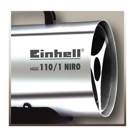 A HGG 110/1 Niro egy nagy teljesítményű és könnyen kezelhető hőlégbefúvó, amelyet kertben és építkezéseken történő használatra terveztek. A készüléket jól szellőztetett tároló helyiségek, garázsok és sátrak fűtésére tervezték. A rozsdamentes acéllemezből készült fűtőköpeny és a speciális acéllemez burkolat gondoskodnak arról, hogy a nagy teljesítményű készülék burkolata ne melegedhessen túl. A praktikus fogantyúnak és a könnyű kialakításnak köszönhetően a HGG 110/1 Niro mozgatása rendkívül egyszerű. A beépített kapcsoló segítségével a ventilátort ki- és bekapcsolhatja. A készülék szabványos 5, illetve 11 kg súlyú propán-bután gázpalackhoz csatlakoztatva üzemeltethető. A gázszelep gombnak és gyújtógombnak köszönhetően a készülék üzembe helyezése rendkívül egyszerű. A beépített piezo gyújtás, valamint a hőszabályzóval ellátott védőburkolat gondoskodnak arról, hogy a készülék ne melegedjen túl, és a munkavégzés mindig biztonságos legyen. A visszaégés gátló szelep és piezoelektromos lángfogó veszélyhelyzetben lekapcsolják a gázt. A nyomásszabályozó szériatartozék. A hőlégfúvót hosszú tápkábellel szerelték fel. A gáztömlő megtalálható a gyári csomagolásban.