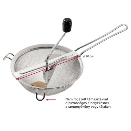 A Westmark Frenches Früchtchen passzírozó az Ön praktikus segítője a zöldségek és gyümölcsök szűréséhez, passzírozásához, pürésítéséhez, gyümölcslé készítéséhez. Ezzel egyszerűen készíthet ízletes gyümölcspürét vagy pürét. A nagyméretű tartókonzolok jó fogást biztosítanak a különböző méretű edényeken és tálakon. A fahenger csak kézzel mosható, de a rozsdamentes acél szita mosogatógépben is mosható.