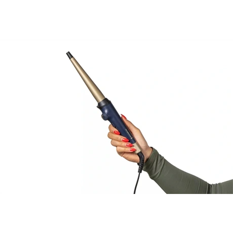 A Remington Sapphire Luxe göndörítő kúpvassal olyan fürtöket készíthetsz, amilyeneket csak szeretnél. Elegáns mélykék kivitele és pezsgő arany díszítőelemei biztosan stílusosan mutatnak majd, bárhol is készülődsz. A kúpvas segítségével lágy, laza hullámokat, határozottabb fürtöket vagy a kettő kombinációját érheted el. A valódi zafírral bevont, fejlett kerámia bevonat segít kisimítani a hajszálak felületét, így elősegíti a ragyogást. A Sapphire Luxe göndörítő kúpvas olyan praktikus funkciókkal rendelkezik, mint a változtatható hőmérséklet, amely minden hajtípushoz alkalmassá teszi, valamint a kényelmes kezelés érdekében hűvös vég.