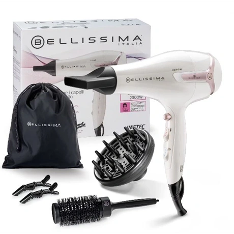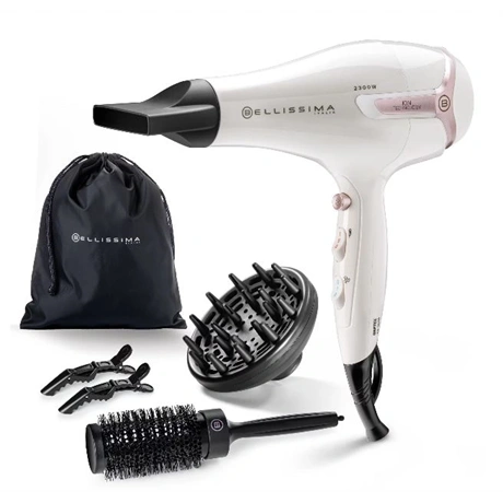 2300 W teljesítményű ionos hajszárító, amely megőrzi a haj nedvességtartalmát, és csökkenti a szárítás közbeni göndörödést.