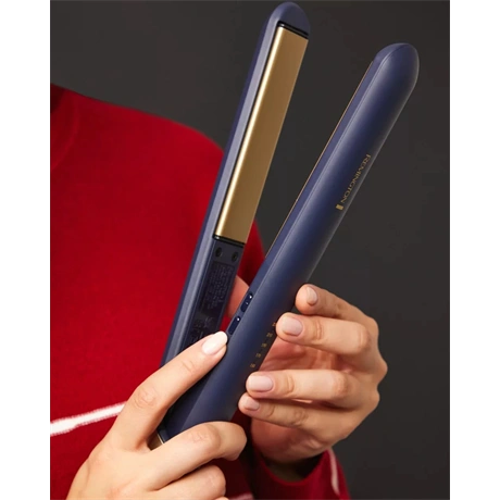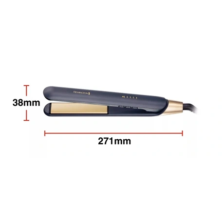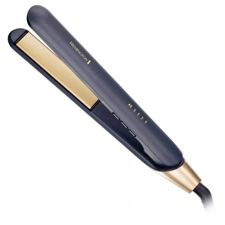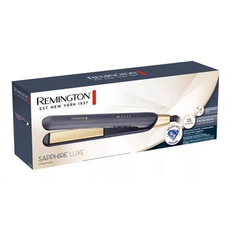 A Remington Sapphire Luxe hajsimítóval egy csipetnyi luxust vihetsz hajformázási rutinodba. A pezsgőszínű elemekkel díszített, elegáns mélykék kivitelű hajsimító zafírral dúsított, fejlett kerámia bevonatú simítólapokkal rendelkezik, amelyek 2-szer simábbá* teszik a hajat a gyönyörű végeredményért. Az öt praktikus beállítással rendelkező digitális hőmérséklet-szabályozó lehetővé teszi a hajtípusnak megfelelő hőmérséklet kiválasztását. A hajformázás során az ívelt burkolat megkönnyíti a loknik és hullámok, valamint az egyenes fazonok kialakítását, míg a rugalmas simítólapok egyenletes nyomást fejtenek ki a hajra, így a hajtövektől a hajvégekig tökéletes eredményt érhetsz el.