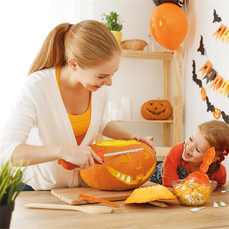 Ha Halloween, akkor mindenkinek a töklámpás jut az eszébe! Ennek a tökfaragó készletnek a segítségével gyerekjáték lesz a faragás! Felejtse el a nagy konyhai késekkel történő veszélyes munkavégzést, a szett része egy mini fűrész, amellyel hatékonyan végezheti el a vágási folyamatokat. A szett részét képezi továbbá kaparóeszköz és lapát is, amellyel könnyen eltávolíthatja a tök belső részét.