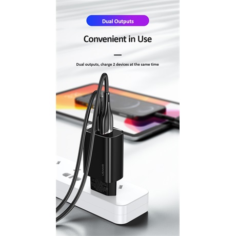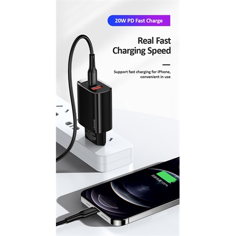 USAMS PD hálózati gyorstöltő adapter 20Watt-os Type-c és Qualcom 3.0 usb csatlakozókkal. Egyszerre két eszköz töltéséhez. A Type-c port 20Wattos PD gyorstöltő kompatibilis minden készülékkel amely rendelkezik Type-c port-tal és támogatja a PD gyorstöltést.